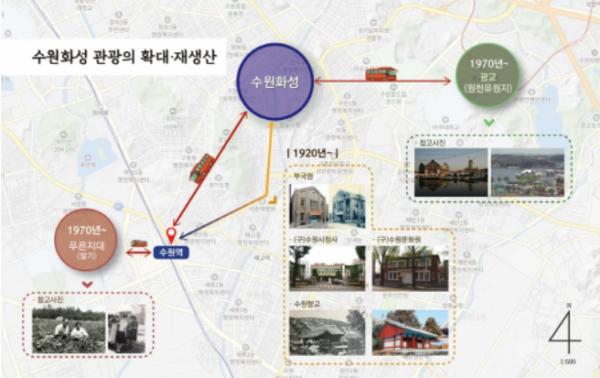 [세계연합신문, 곽동근기자] 부국원 등 1920년대 옛 모습을 간직한 문화유산과 1970년대 추억이 담긴 딸기농장 및 원천유원지, 2000년대 광교호수공원 등 수원의 기억들이 수원화성과 연계된 관광자원 거점으로 재생산된다.