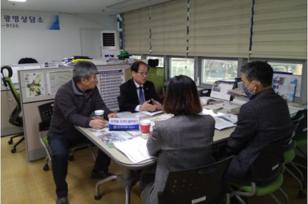 회의를 마친 유근식 도의원은 광명 구름산지구 도시개발사업을 차질없이 추진해달라고 주문하며 “안서중학교 이전등 해결해야 할 문제가 산재해 있다. 가능한 주민들의 입장에서 개발하기 위해 노력해달라” 당부 하였다.