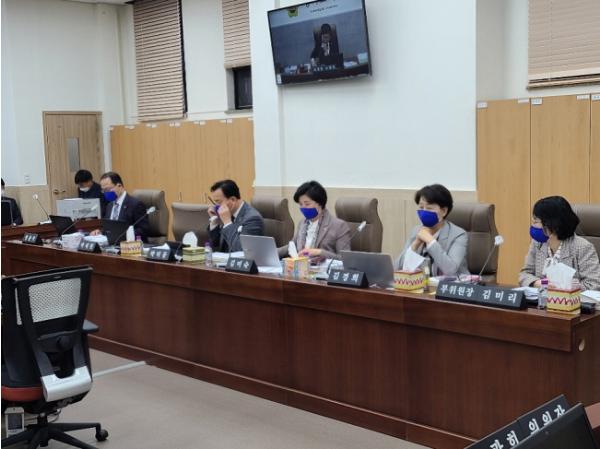 [세계연합신문, 곽동근기자] 경기도의회 교육행정위원회(위원장 조광희) 의원들이 23일 제342회 상임위원회 임시회에 참석하면서 방역마스크 대신에 면마스크를 사용하였다. 최근 전국적으로 마스크 공급 문제로 ‘마스크 5부제’를 시행하는 등 국민들이 불편을 겪고 있고, 특히 의료진 등에게 꼭 필요한 보건용 마스크도 공급이 턱없이 부족한 실정에 있다. 이에 교육행정위원회는 코로나 19확산을 적극적으로 차단하기 위해 보건마스크를 의료현장과 구매 취약계층 등에 우선 지원하고 공적 공급마스크 구매도 자제하는 사회적인 참여 운동에 동참하기로 한 것이다.