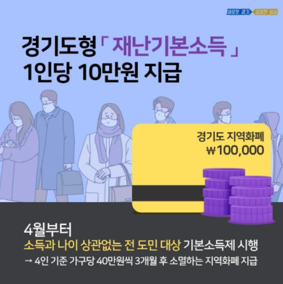 [세계연합신문, 곽동근기자] 경기도가 코로나19로 위축된 경제위기를 극복하기 위해 4월부터 도민 1인당 10만 원씩 재난기본소득을 지급하기로 했다. 재난기본소득에 대한 사회적 논의가 이뤄지고 있는 가운데 소득과 나이 상관없이 전 도민을 대상으로 하는 기본소득제 시행이라는 점에서 의미가 있다.