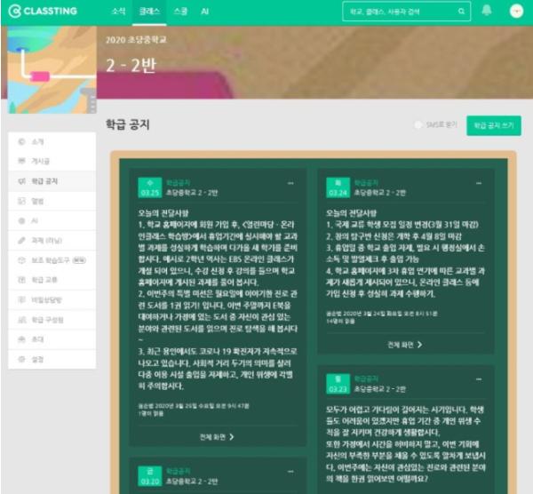 초당중학교(교장 이경희)는 개학 연기에 따라 교사 관리형 ‘우리집 온라인 클래스’를 운영하고 있다.