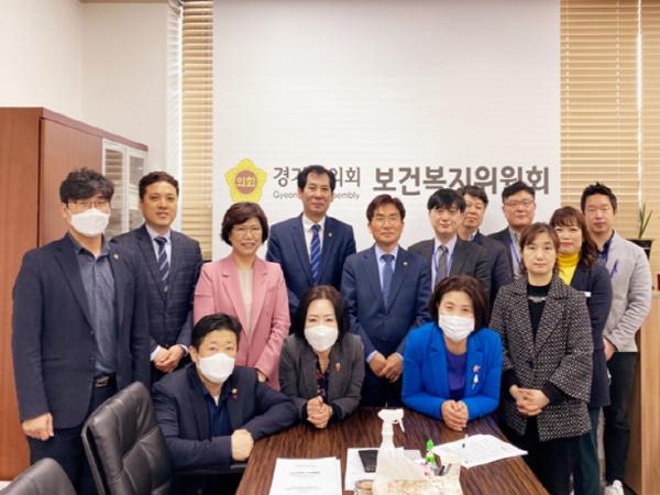 경기도의회 보건복지위원회(위원장 정희시, 더민주, 군포2)는 25일 오전 보건복지위원실에서 김성수 새로운경기도립정신병원장, 경기도 건강증진과 관계자 등과 새로운경기도립정신병원 개원 관련 현안 간담회를 가졌다.