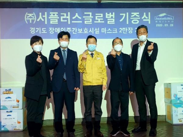㈜서플러스글러벌은 사회공헌의 일환으로, 해외 중국지사를 통해 마스크(KN80) 2만장을 직접 확보, (사)경기도장애인주간보호시설협회에 26일 기탁했다.