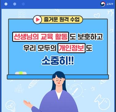 원격수업을 방해하거나, 선생님 혹은 친구 얼굴이 담긴 수업 영상을 마음대로 캡처하거나 녹화해 유포하면 안 됩니다. 타인의 권리를 침해하는 행위이고, 개인정보 보호법, 교원지위법을 어기는 중대한 범법행위이기 때문에 처벌받을 수 있습니다.