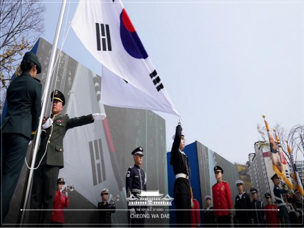 이어 대통령은 "3·1독립운동의 유산과 임시정부의 정신이 오늘에 살아있게 하고, 우리 미래 세대들이 새로운 역사의 당당한 주역이 될 수 있도록 독립운동의 역사를 기리고 알리는 일을 잠시도 멈추지 않겠다"고 약속했다. '독립·호국·민주'에 헌신한 국가유공자와 가족들에 대한 보훈과 예우에 국가의 도리를 다해 나가겠다고 다짐한 것이다.