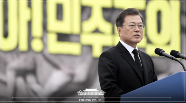 이에 대통령은 민주화운동 관련 단체장 등과 함께 행사장에 입장했고 헌화 및 분향을 하며 대한민국 민주주의를 위해 항거한 모든 민주영령들을 기억하고 추모하는 시간을 가졌다.