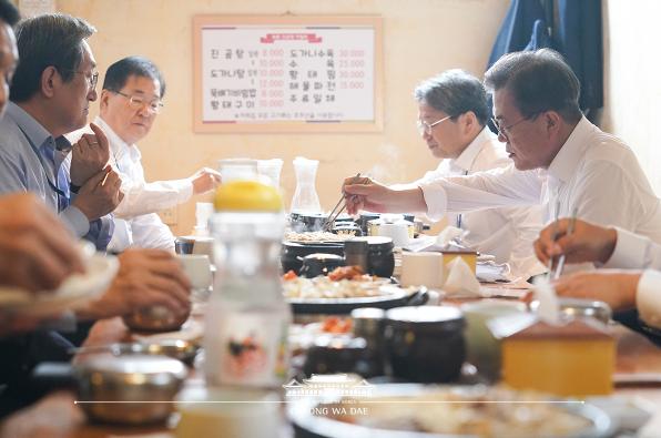 [세계연합신문, 송원기기자] 문재인 대통령은 5월1일 점심시간, 수석·보좌관들과 함께 청와대 인근 삼청동의 식당을 찾았다. 점심은 소상공인, 자영업자들이 어려운 상황에서 가급적 주변 식당을 이용해 달라는 독려 차원이다.