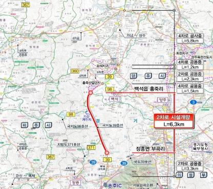우선 5월 18일자로 착공한 ‘장흥~광적’ 도로공사는 총 사업비 914억 원을 투자해 양주시 장흥면 부곡리에서 백석읍 홍죽리까지 총 6.3㎞ 구간을 왕복 2차로로 개량하는 사업이다.