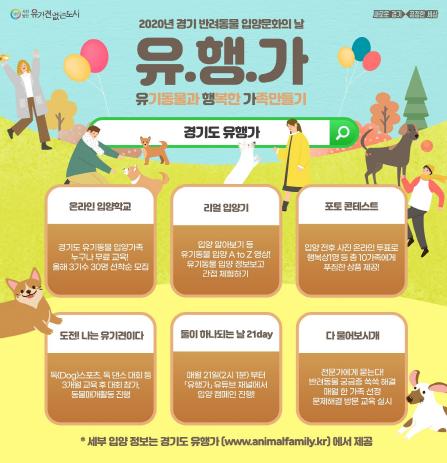 [세계연합신문, 이수진기자] 경기도가 올 한해 올바른 유기동물 입양문화 활성화를 위해 유튜브 생방송 등 다양한 콘텐츠를 즐길 수 있는 온라인 플랫폼 ‘유기동물과 행복한 가족만들기, 유행가’를 운영한다고 20일 밝혔다.