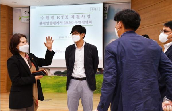 [세계연합신문, 이수진기자] 경기도의회 김직란 도의원(더불어민주당, 수원9)은 지난 19일. 한국철도시설공단 주관으로 열린 ‘수원발 KTX 환경영향평가 주민설명회’에 참석하여 대기질 및 소음·진동 등 영향예측 제외한 사유 설명과 수원역 환승주차장 증설 필요, 경부선 선로 주변 방음벽 추가 설치, 센트럴타운3단지 소음측정 등을 요구하고, “지역주민과 관련 부서 간의 소통이 필요하다”는 점을 강조하였다.