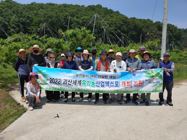 도 농업정책과 직원들은 일손돕기가 끝난 후 충북도와 괴산군이 추진하고 있는 2022괴산세계유기농산업엑스포 유치가 성공하길 염원하며 ‘2022괴산유기농산업엑스포 개최 기원’플래카드를 들고 홍보활동도 병행했다.