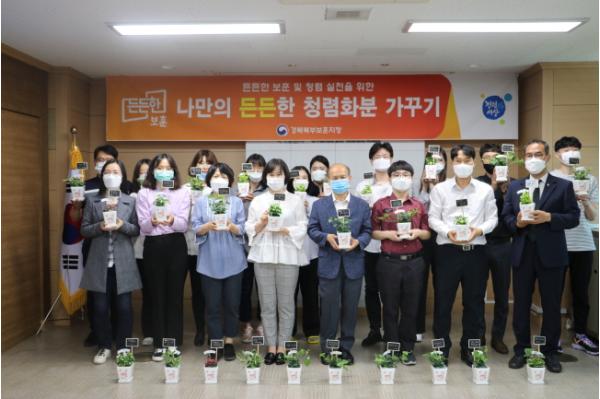 경북북부보훈지청(지청장 우진수)은 6. 1.(월) 오전 11시 지청 회의실에서 든든한 보훈 다짐 및 청렴 실천 약속을 위한 나만의 든든한 청렴화분 가꾸기 행사를 전직원이 참여한 가운데 실시했다.