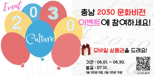 [세계연합신문, 박웅기기자] 충남도는 오는 30일까지 ‘충청남도 2030 문화비전과 정책’ 수립을 위한 도민 의견 수렴을 진행한다고 1일 밝혔다.
