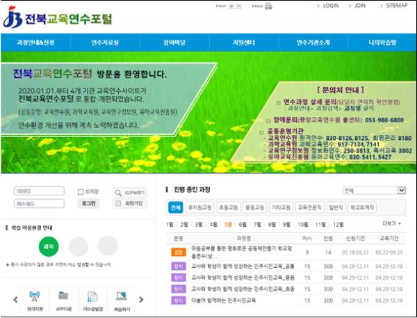전라북도교육연수원(원장 김학산)은 올해 1월부터‘전북교육연수포털’로 개편 운영함으로써 도내 교직원의 연수시스템 운영비를 매년 약 25% 정도 절감할 수 있게 됐다고 밝혔다.