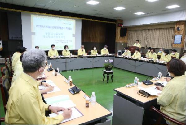 경상남도교육청(교육감 박종훈)은 2일 오전 본청 강당에서 교육감, 부교육감, 국장 및 부서장과 18개 교육지원청 교육장 등 총 43명이 참석한 가운데 「6월 교육정책관리자 회의」를 개최했다.