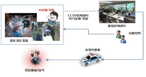 ‘안심점포’ 비상벨은 신고 시 자치구 CCTV 관제센터로 연결되는데, 현장 상황 청취와 동시에 인근 CCTV 모니터링을 통해 침입자의 이동 경로를 파악할 수 있으며, 현장 상황에 대한 판단을 통해 즉시 경찰출동이 가능하여 1인 점포 운영 여성의 안전망 역할을 할 것으로 기대된다.