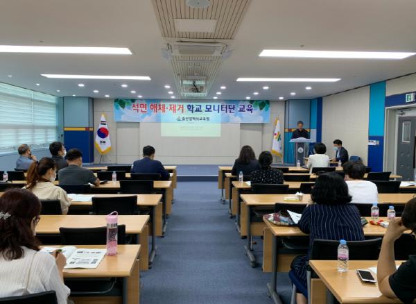 울산광역시교육청(교육감 노옥희)이 29일 시교육청 2층 다산홀에서 여름방학 석면 해체·제거학교 석면모니터단 교육을 했다.