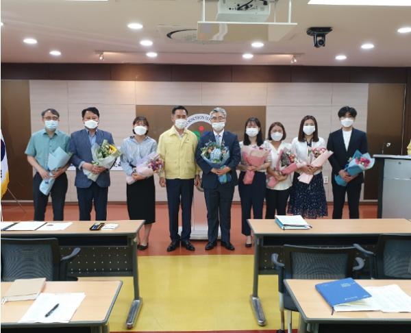 7월 1일자 전입한 인원은 총 8명으로 이계영 행정지원과장, 최명희 교육협력팀장, 교육재정팀 신소희 주무관, 학교지원팀 곽예슬 주무관, 행정팀 선형조 기록연구사, 체육복지팀 최선범 주무관, 중등교육팀 조규상 주무관, 보건급식팀 조다솜 주무관이며, 모범공무원 전수식에서는 김희곤 교육재정팀장과 상사초등학교 김호성 주무관이 표창을 받았다.