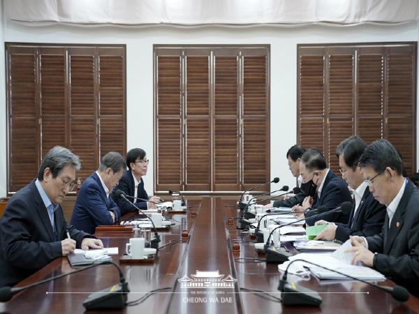 회의를 마치며 문 대통령은 홍 부총리에게 “지금까지도 잘해 왔으니 앞으로도 잘해 달라”고 당부했고, 홍 부총리는 “최선을 다하겠다”고 말했다.